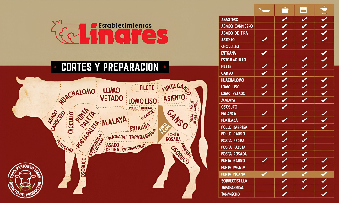 Si buscas calidad y sabor en cada preparación, en Establecimientos Linares tenemos el corte perfecto para ti. Ya sea para la parrilla, la olla o la plancha, contamos con una variedad de opciones para que disfrutes de la mejor carne, 100% de pastoreo libre y directo del productor.